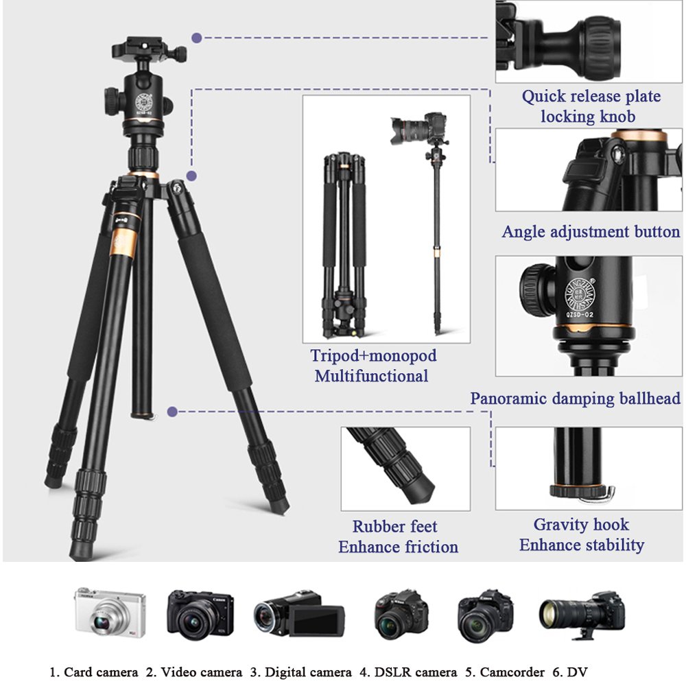 Chân máy ảnh QZSD Q222 Chân máy ảnh nhôm cầm tay chuyên nghiệp