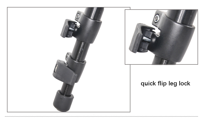 Khóa điều chỉnh góc chân đảm bảo điều chỉnh duy nhất của mỗi chân. Chân cột 4 phần với khóa nhả nhanh, giúp xử lý chân thuận tiện hơn, thỏa mãn chiều cao mong muốn của bạn khi chụp.