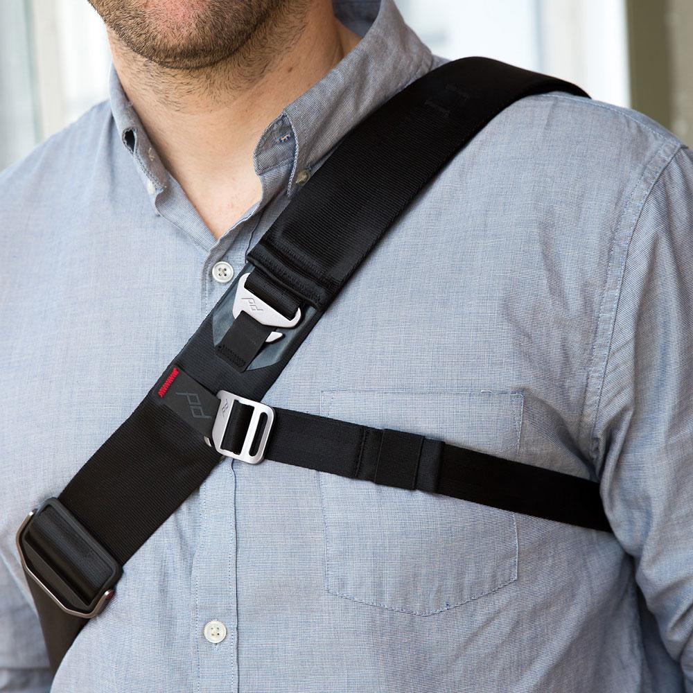 Dây đeo ổn định có thể đeo chéo (như túi messenger tiêu chuẩn) hoặc quanh eo để phân phối tải trọng và ổn định