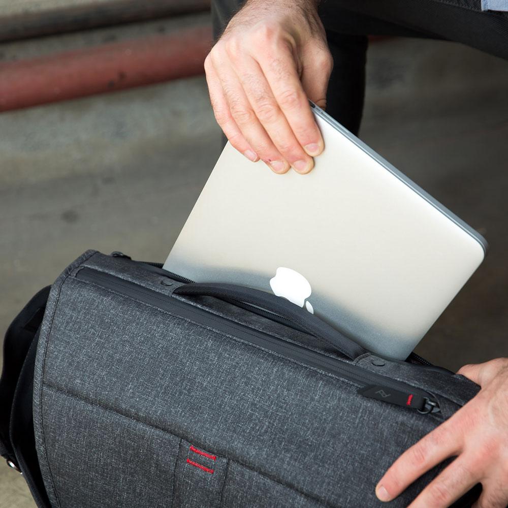 Dây đeo siêu điều chỉnh chuyển đổi túi từ messenger sang túi đeo vai thấp.